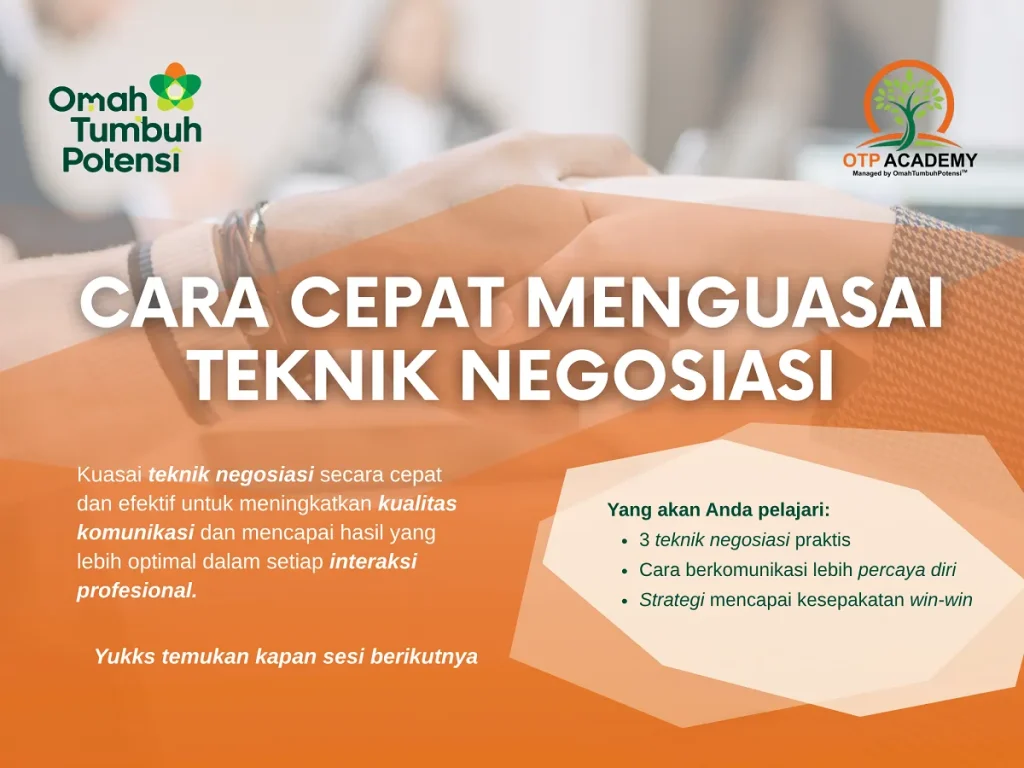Sesi pelatihan ini dirancang untuk membekali peserta dengan teknik negosiasi praktis yang efektif dalam meningkatkan kualitas komunikasi dan kepercayaan diri pada setiap interaksi profesional. Melalui materi ini, peserta akan mempelajari strategi strategis untuk mencapai kesepakatan yang saling menguntungkan (win-win solution) guna mengoptimalkan hasil dalam berbagai situasi bisnis.
